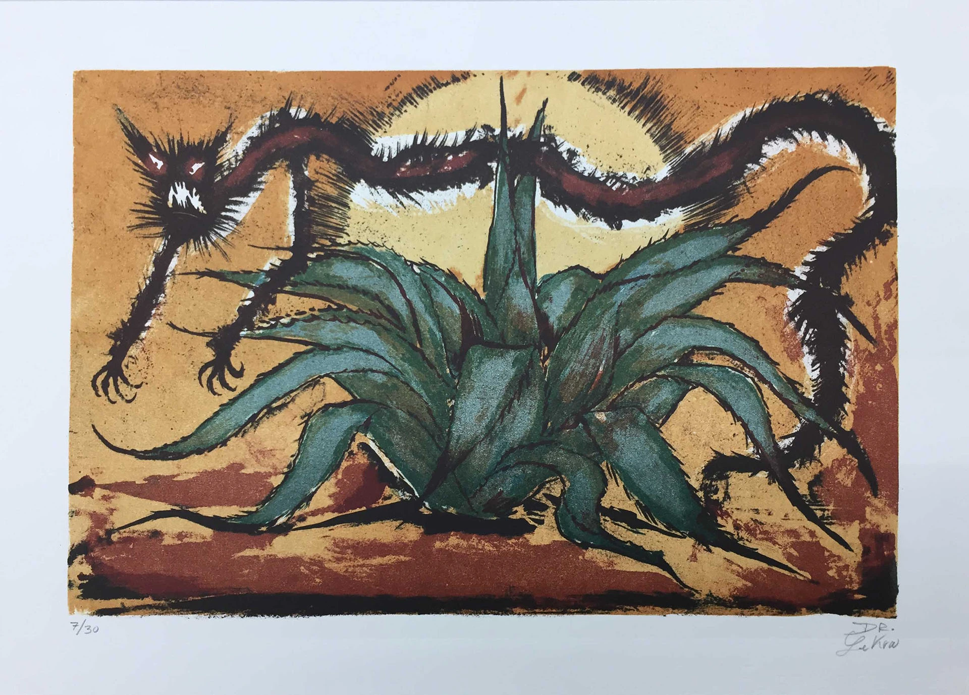 Sergio Hernández traduce los mitos a un impresionante imaginario plástico, pues crea una multitud de personajes y símbolos pictóricos que viven en un mundo maravilloso, aunque aterrador.