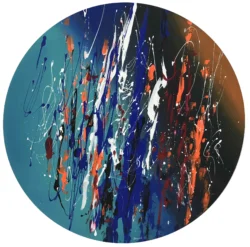Exploradora activa del arte fluido, Azadeh Shamsaei se inspira en la energía del cosmos para crear ríos de colores que corren y se expanden de forma aleatoria sobre el lienzo, evocando formas únicas, llenas de movimiento.