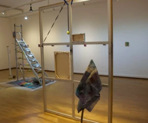 La sala cuenta con tres muros, la cuarta pared es la entrada frontal de la galería. En el muro más grande está montado un políptico abrumador, en las otras dos, óleos de formato mediano, tan llamativos que el visitante no da cuenta de lo que se encuentra al centro de la sala, como dejada ahí a mitad del montaje, olvidada. Sin menospreciar la contundencia de estas obras, en cambio, aprovechando su circularidad de tema, la pieza sin nombre se activa en segundo plano.