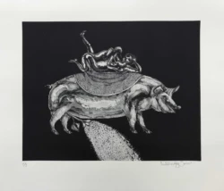 Era la década de 1970 y desde entonces Emiliano López Javier ha creado obras echando mano del imaginario de su infancia. Conforma cada una de sus pinturas y gráficas con una vastedad de elementos que le recuerdan de dónde viene. El resultado es una zoología fantástica llena de color, su gran “enemigo”.