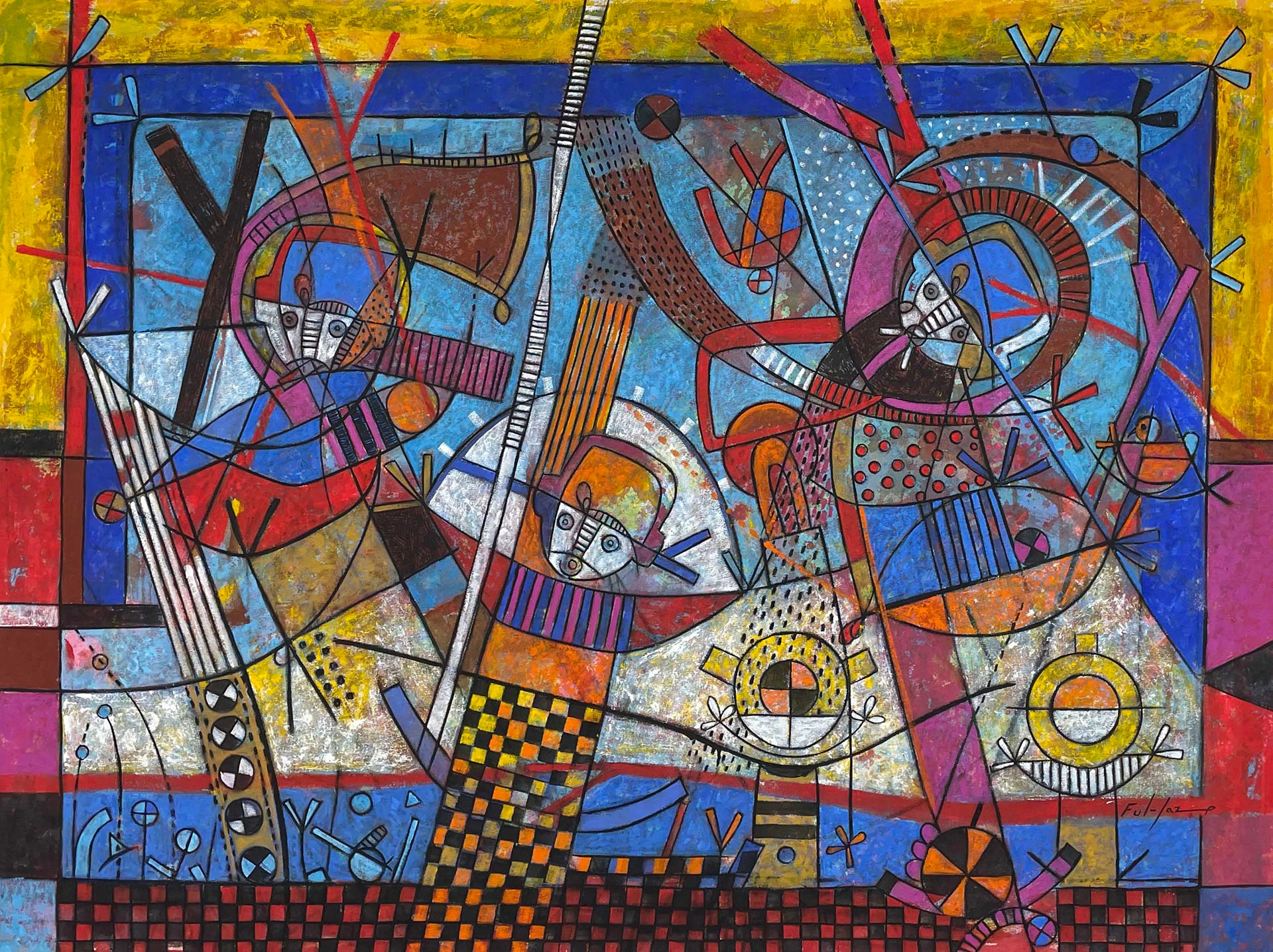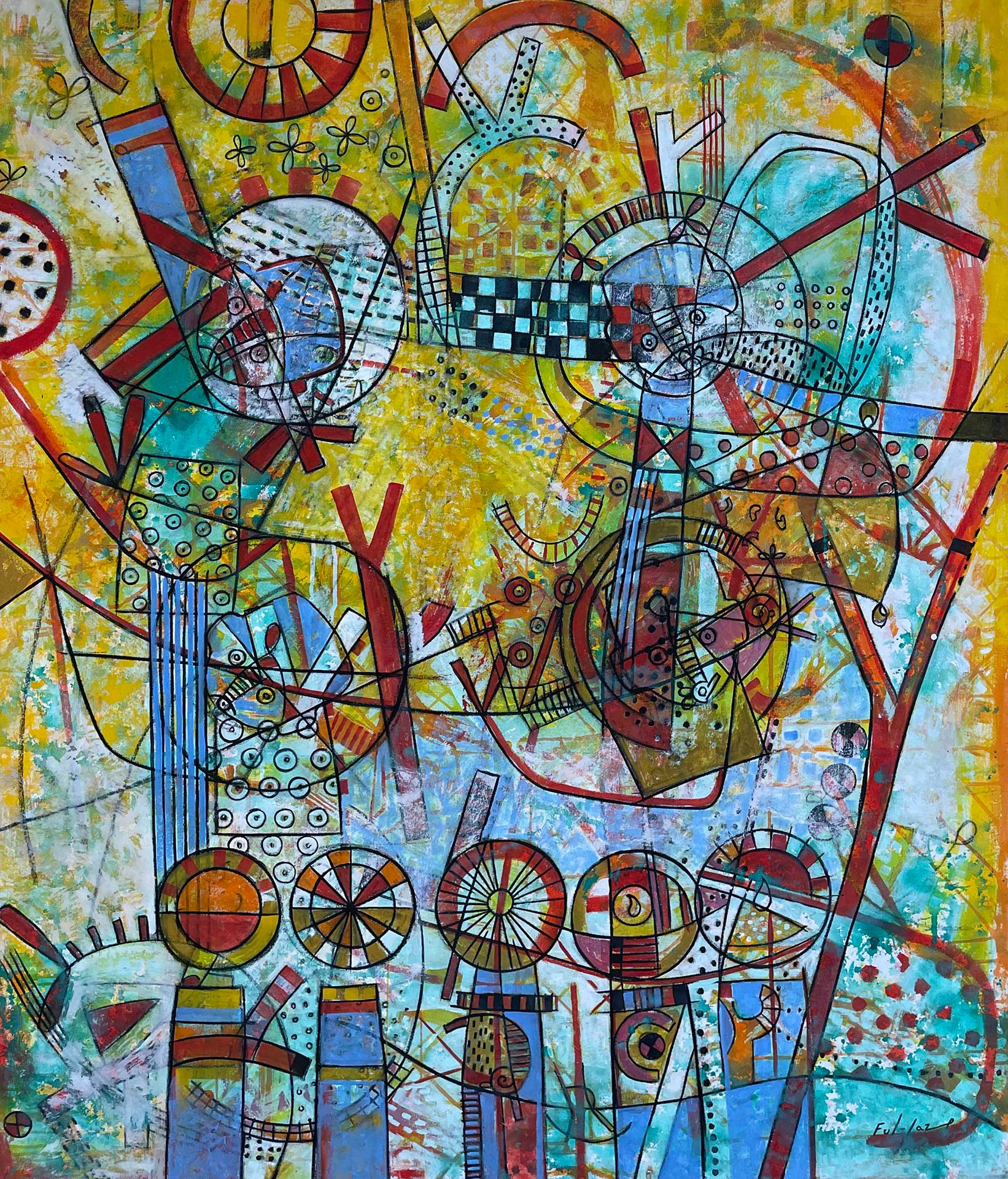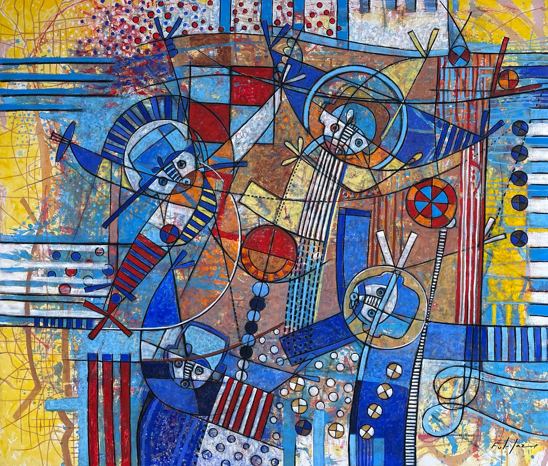 Las pinturas y esculturas abstractas, vibrantes, de Fulgencio Lazo son una exploración personal de la identidad cultural, las experiencias de migración y el poder de la comunidad, que ha expuesto en México, Estados Unidos, Japón y Francia.
