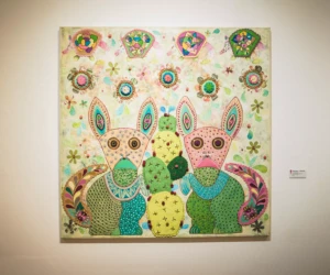 Las piezas creadas por J. Sasky & G. Vilchiz y su grupo de artesanos aluden a la imaginería femenina indígena y al cromatismo de la visualidad oaxaqueña. Generan ensoñaciones mágicas sobre iconos religiosos, como la Virgen de Guadalupe, reinterpretaciones de personajes artísticos, como Frida Kahlo, así como un cúmulo diverso de imágenes que refieren a la fauna y flora endémicas del territorio oaxaqueño. Pintura-diseño-artesanía que funciona como imán para el espectador, como nichos de luz y color, que interpelan una y otra vez nuestra mirada.