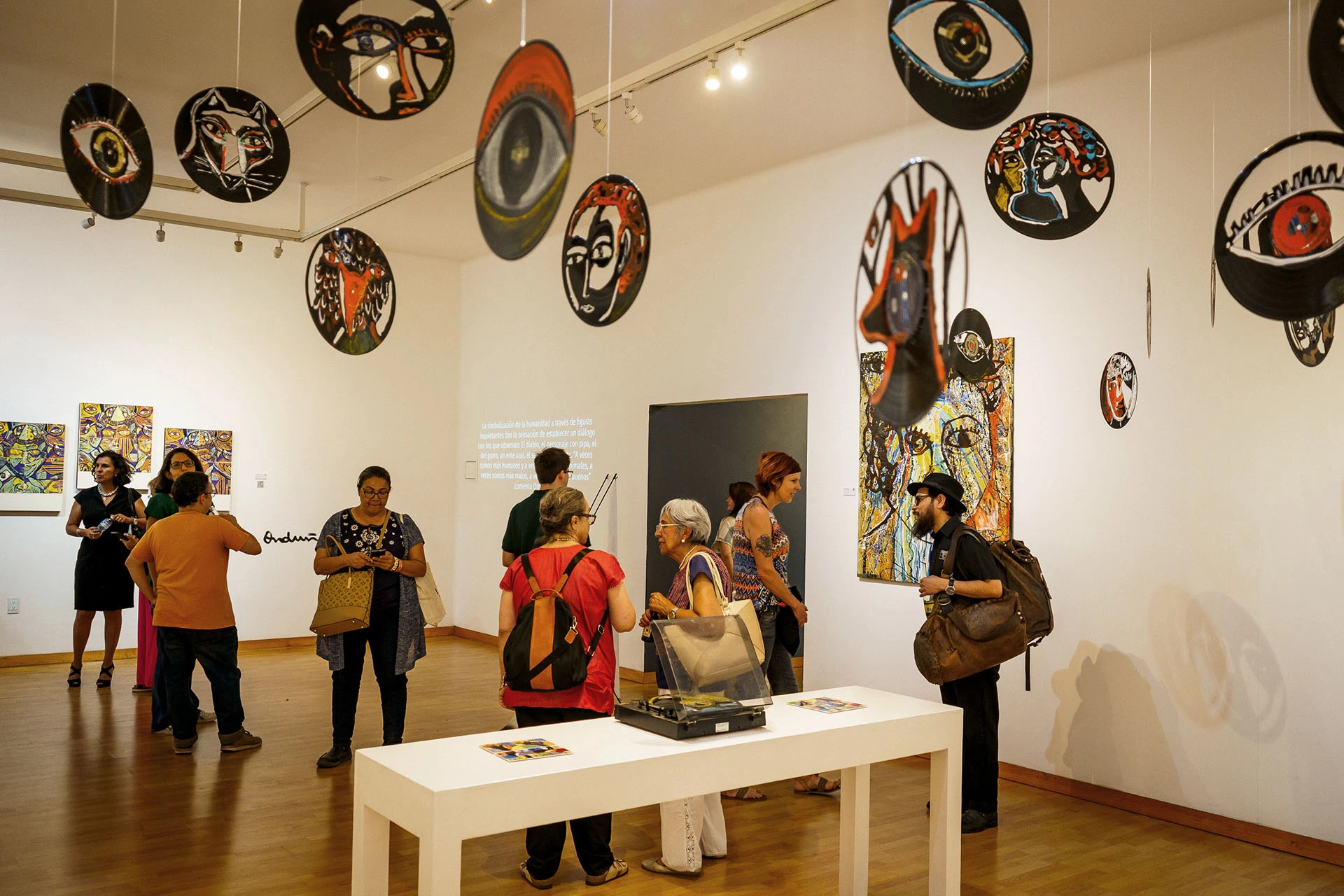 La simbolización de la humanidad a través de figuras inquietantes da la sensación de establecer un diálogo con los que observan: el diablo, el personaje con pipa, el del gorro, un ente azul, el ser con bigote, etcétera. “A veces somos más humanos y a veces somos más animales; a veces somos más malos, a veces somos más buenos”, comenta Orduña.