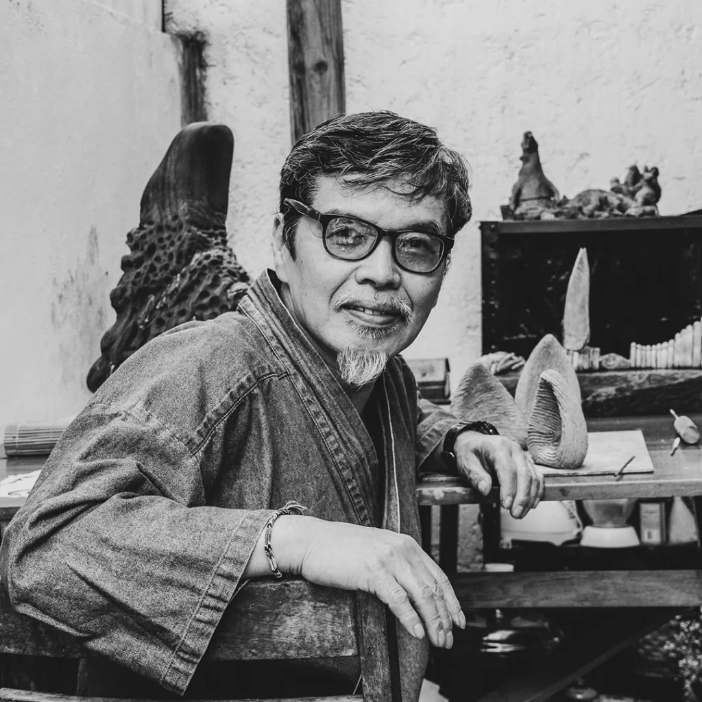 Se graduó en Artes Plásticas en la Universidad de Tokai, Kanagawa (1984), y se especializó en Escultura en el Taller Kobatake, en Saitama (1986-1988).