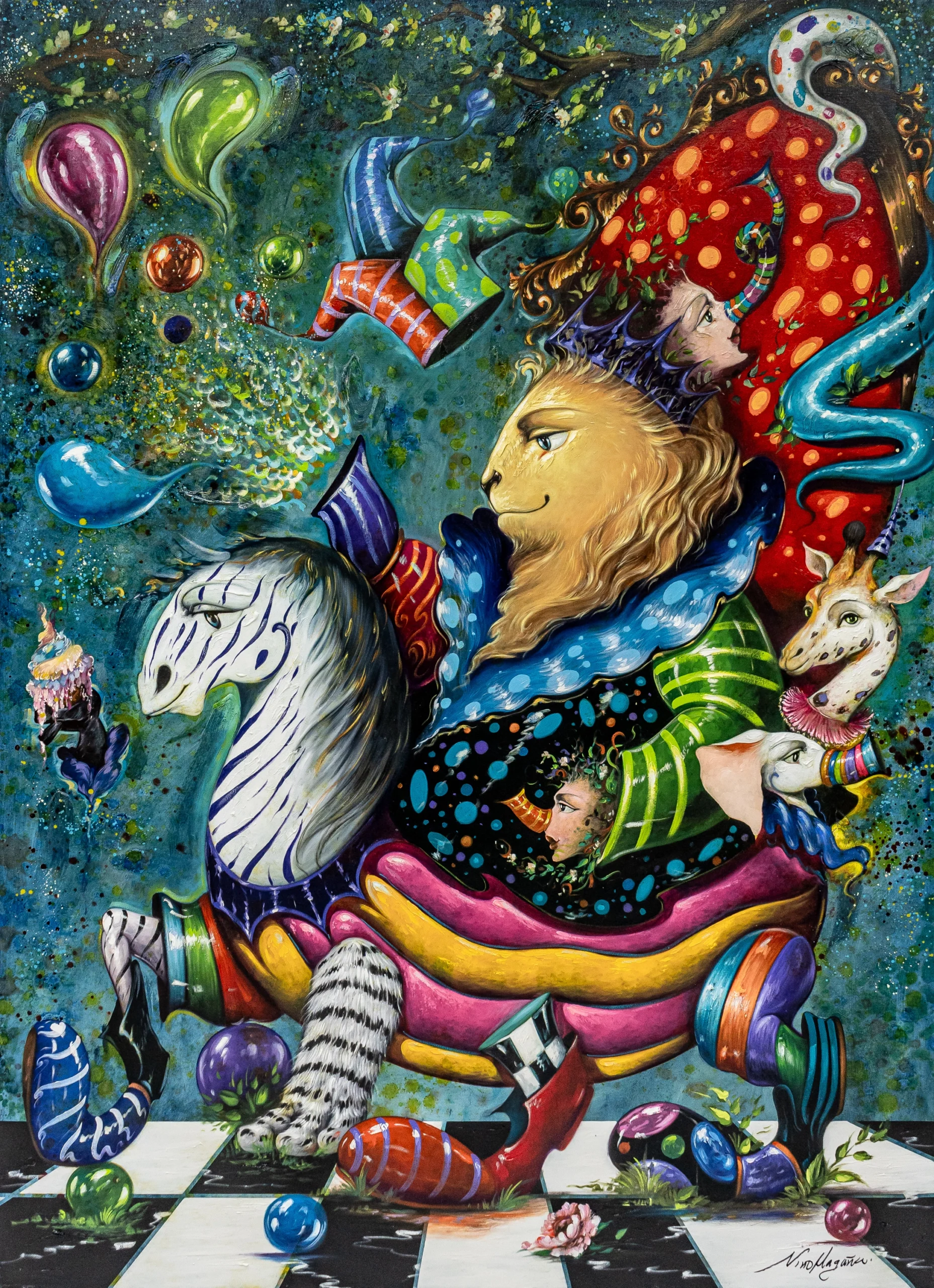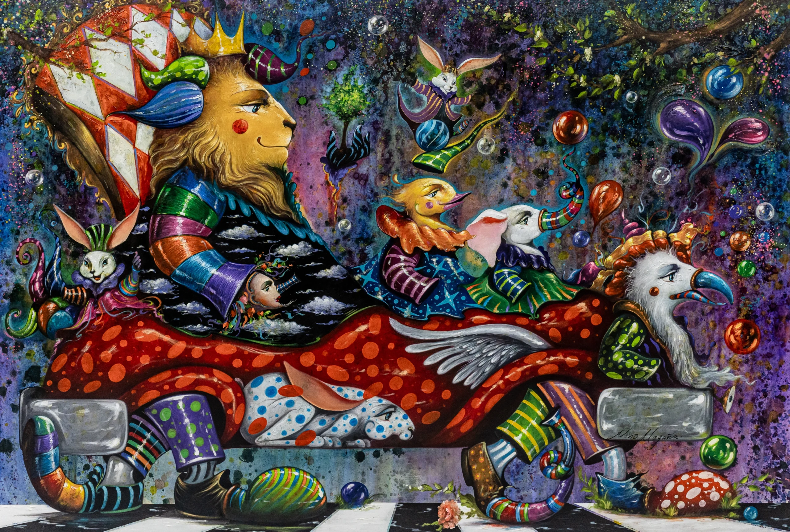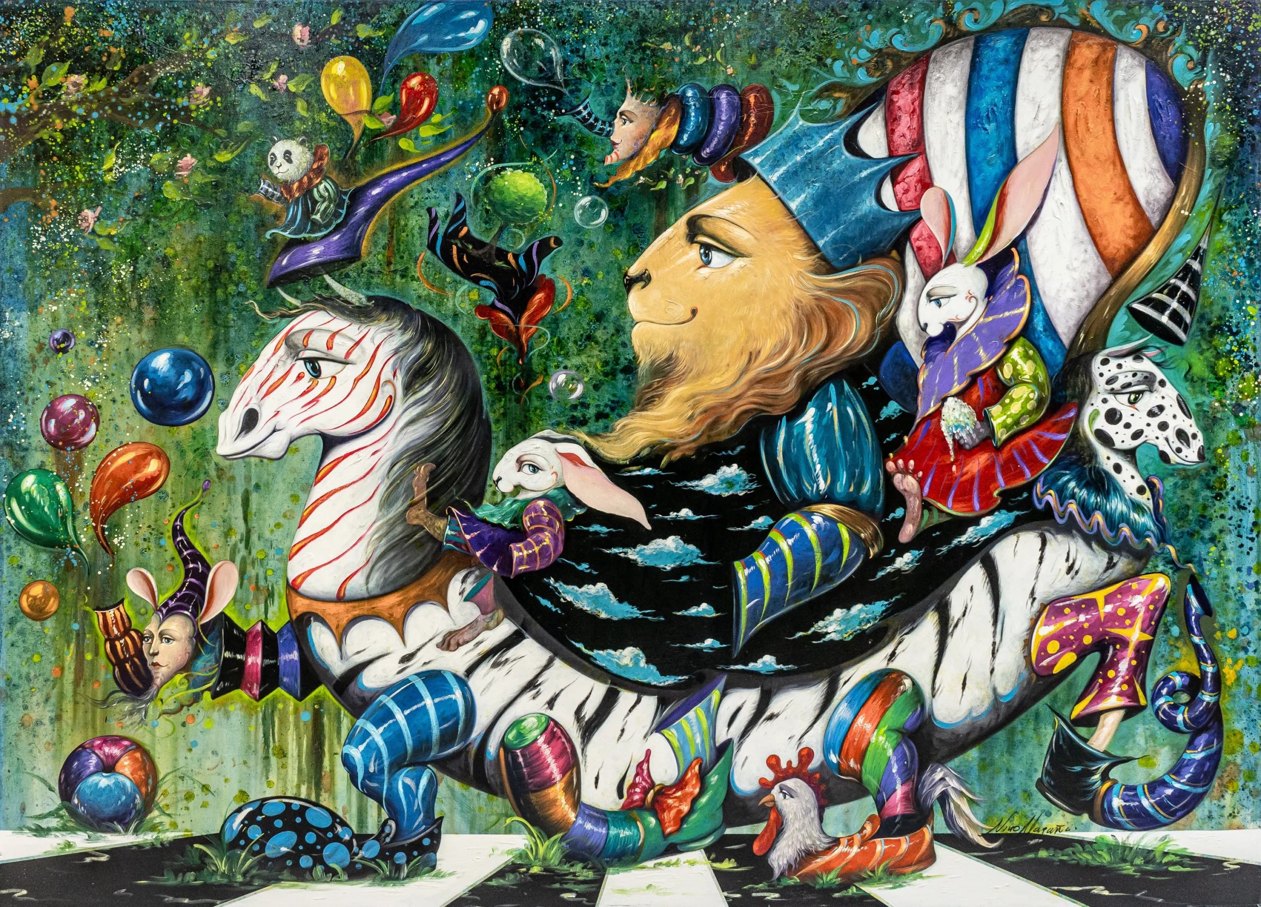 Un león no es un león. O lo es pero porta alas y vuela hacia todos los rincones del subconsciente habitando con colores las sombras. La realidad es un anagrama absurdo que exige ser reinventado a través de los sueños, para habitar otros espacios y así despojarse de su insoportabilidad humana, para llegar hasta donde nunca se ha estado. Desde la onírica esencia de ser-resignificar, de convertir todo lo que no se ha sido en todo aquello que la fantasía permite ser, un león puede volar hacia la luna mientras llena de sonidos la bóveda celeste que se ilumina con estrellas-conejo.