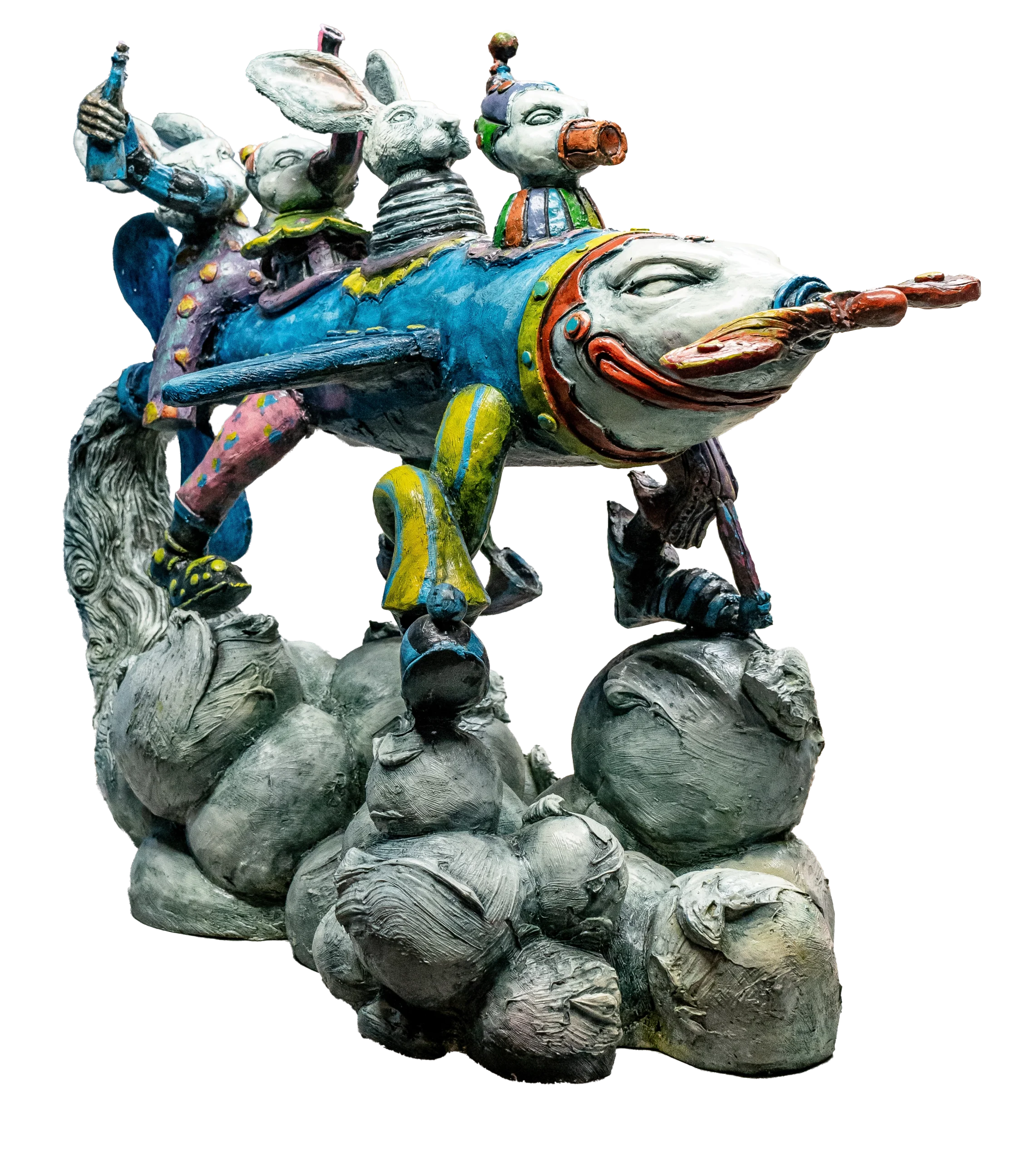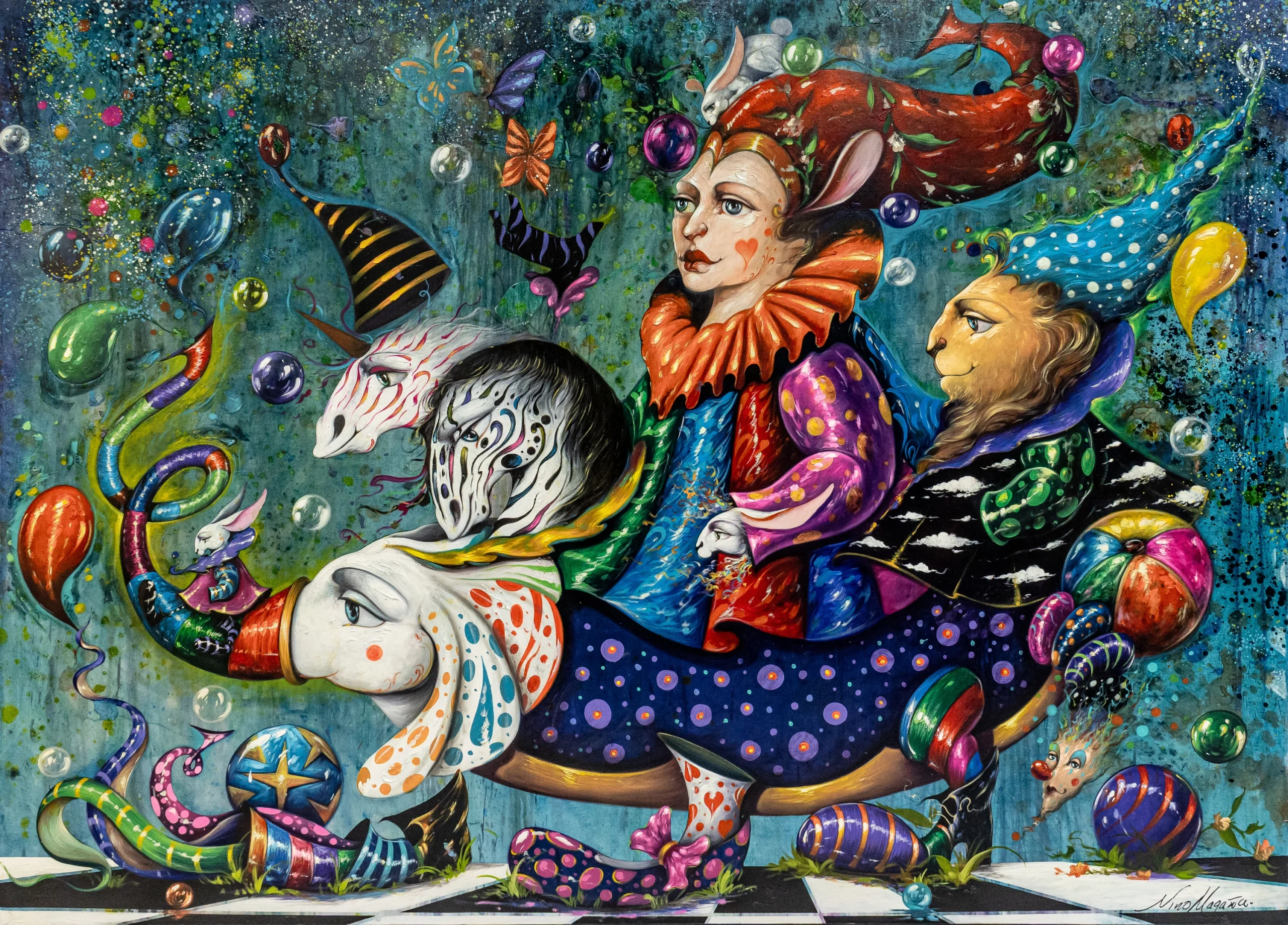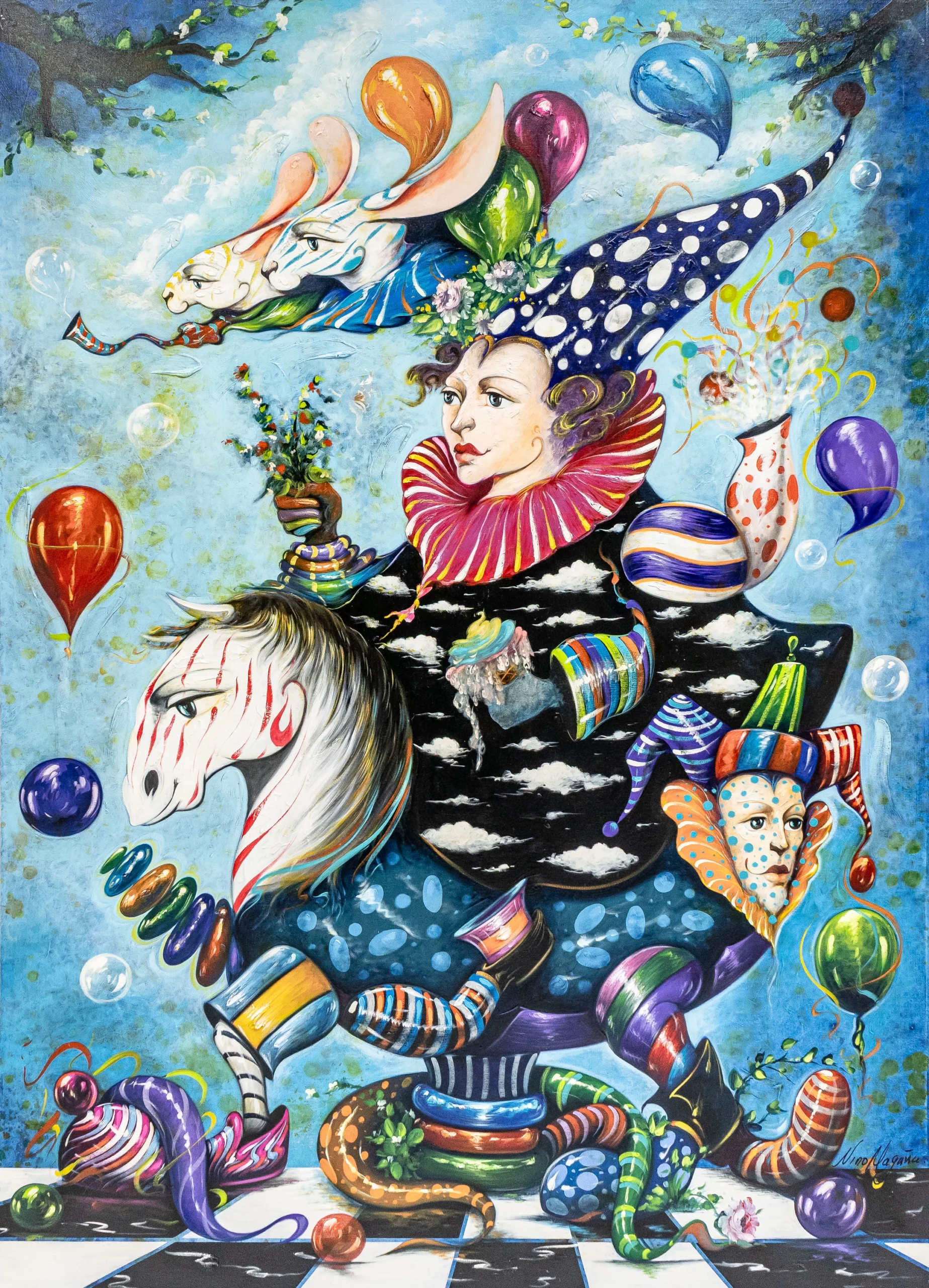 Un león no es un león. O lo es pero porta alas y vuela hacia todos los rincones del subconsciente habitando con colores las sombras. La realidad es un anagrama absurdo que exige ser reinventado a través de los sueños, para habitar otros espacios y así despojarse de su insoportabilidad humana, para llegar hasta donde nunca se ha estado. Desde la onírica esencia de ser-resignificar, de convertir todo lo que no se ha sido en todo aquello que la fantasía permite ser, un león puede volar hacia la luna mientras llena de sonidos la bóveda celeste que se ilumina con estrellas-conejo.