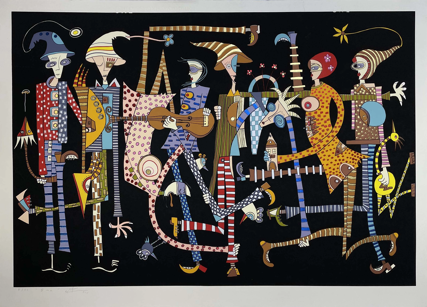 Omar Huerta es creador de personajes fantásticos, estilizados, y de travesías oníricas que inquietan conciencias y promueven la reflexión acerca de nuestra sociedad. Su obra brinda posibilidades de libertad y de construcción de otras realidades.