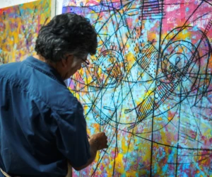 Con todo, su pintura da un vuelco al regocijo. Es algarabía constante, una que fulgura como chisporroteo para ensalzar la cuna de origen. Sus cuadros son ventanas superlativas a la alegría, aunque también exhiben los temas de la dispersión, los encuentros y de la vital pertenencia/permanencia de lo que somos.