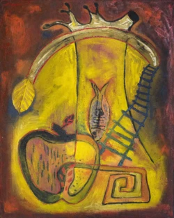 A ello se suman experiencias de los paseos y juegos de la infancia, inquietudes y reflexiones existenciales, con lo que su obra combina elementos orgánicos y una simbología personal. Su fantasía está nutrida de armadillos, tortugas o cangrejos, de comidas regionales.