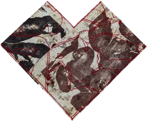 El papel, soporte histórico del grabado, adquiere un papel protagónico como superficie de inscripción y como cuerpo vulnerable. Se dobla, perfora, acumula y enlaza, evidenciando procesos físicos que remiten al paso del tiempo.