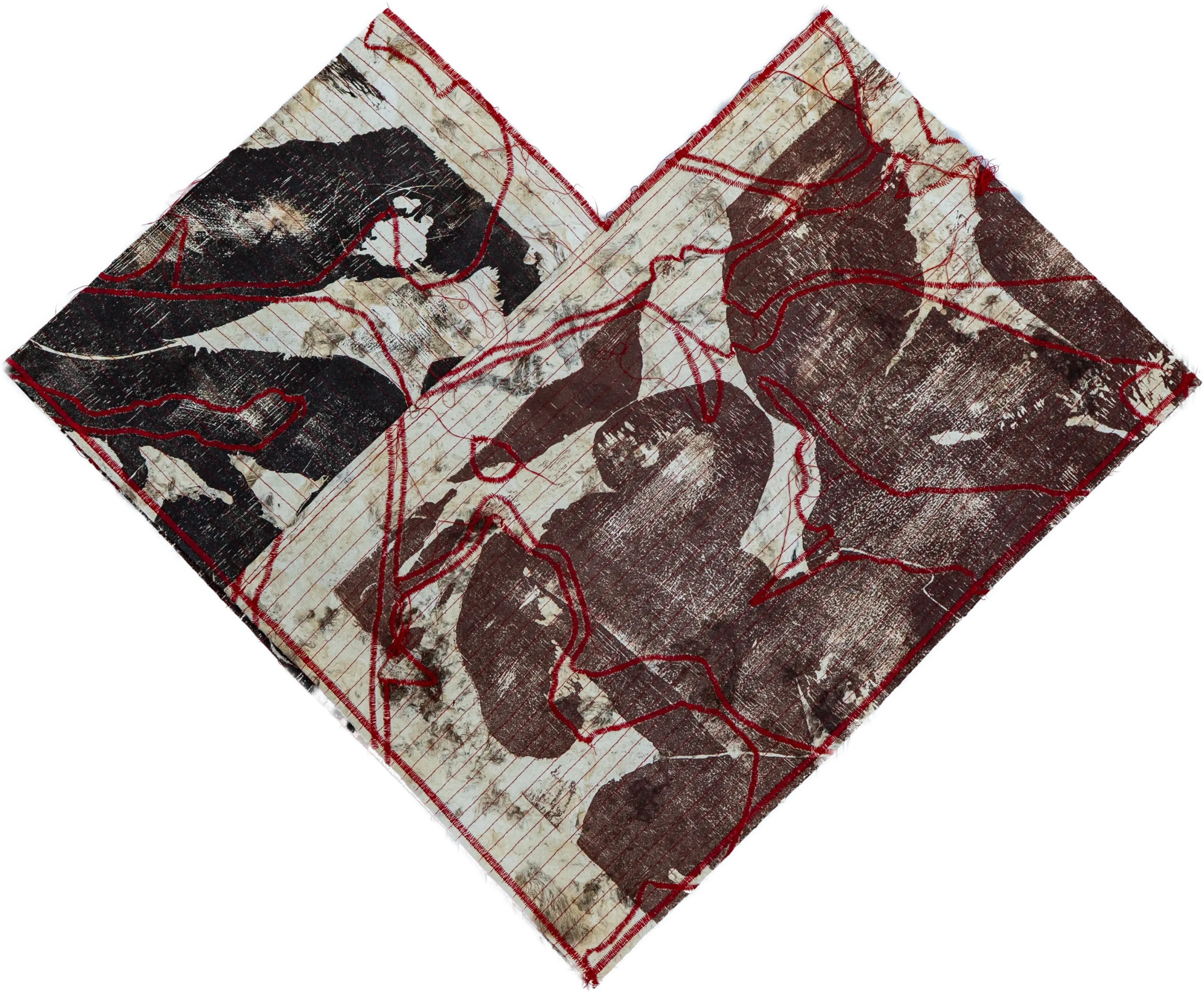 El papel, soporte histórico del grabado, adquiere un papel protagónico como superficie de inscripción y como cuerpo vulnerable. Se dobla, perfora, acumula y enlaza, evidenciando procesos físicos que remiten al paso del tiempo.